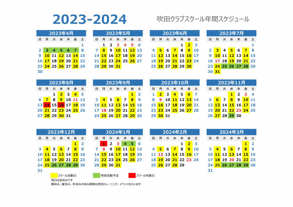 活動日 | 月曜、水曜、金曜 16時30分~18時30分 土日祝祭日 ※全ての活動に参加できなくてもかまいません ※土日の活動は大会参加費、会場参加費が発生します |